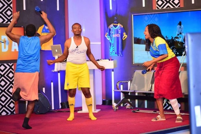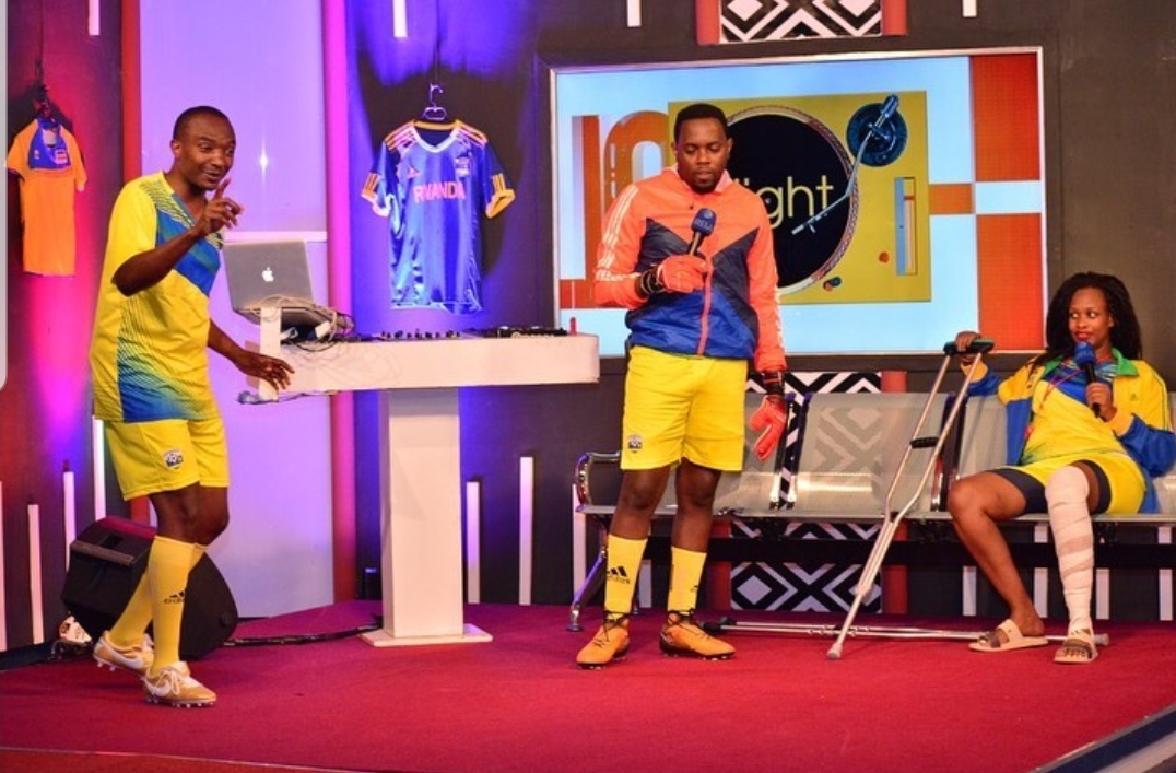 Gatanu, abakora iki kiganiro bigaragaje bambaye umwambaro w’ikipe y’igihugu