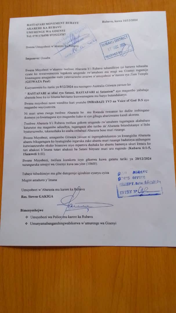 Ibaruwa yanditswe y'abarasita b'i Rubavu basaba uburenganzira bwo kwigaragambya mu mahoro