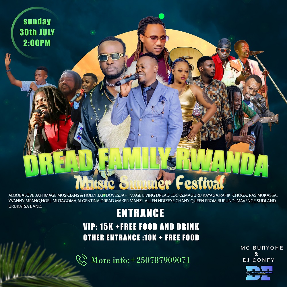 Iri serukimuco rirayoborwa na MC Buryohe, ricurangwemo na DJ Confy. Uwifuza kuryitabira, agura itike anyuze ku rubuga rwa noneho.com. Guhera saa munani imiryango iraba ifunguye. Amatike hari aya 15,000Frw harimo icyo kurya no kunywa n'iya 10,000 irimo ibyo kurya gusa.Iserukiramuco ryateguwe na Dread Family Rwanda rigiye kuba ku nshuro ya mbereNyirabatesi Argentine (wambaye umupira w'umuhondo) ari mu bateguye iri serukimuco rigamije kuzamura umudeli wa DreadUmurundikazi Chany Queen ari mu bahanzi baza gususurutsa abitabira iki gikorwaMC Buryohe ni we mushyushyarugamba mu iserukiramuco rigiye kuba ku nshuro ya mbere