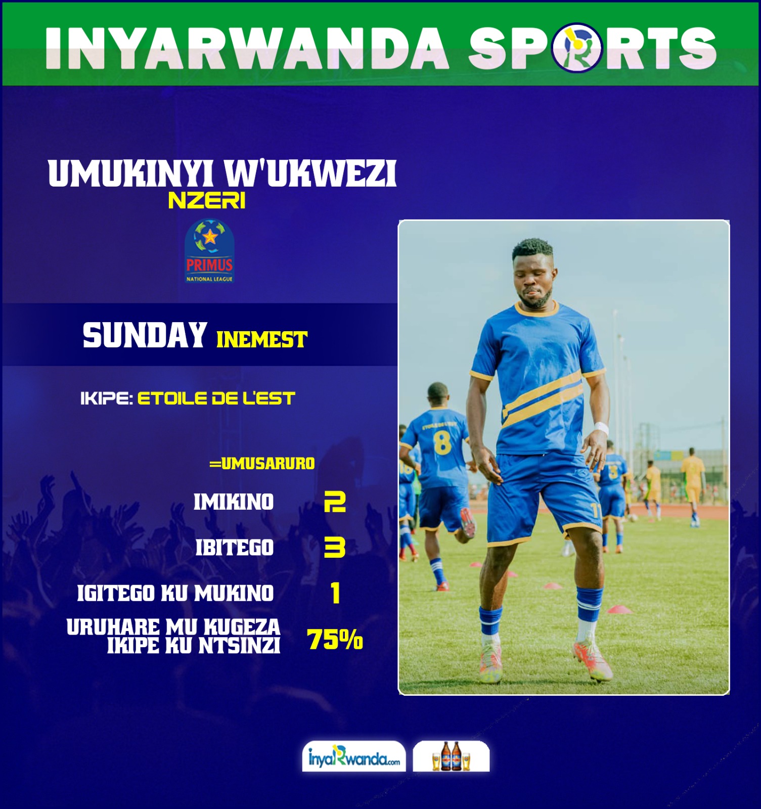 Sunday Inemest rutahizamu wa Etoile de L'est, yari ahanganye na Ani Elijah ukinira Bugesera FC ndetse na Abdul Rahman Rukundo.