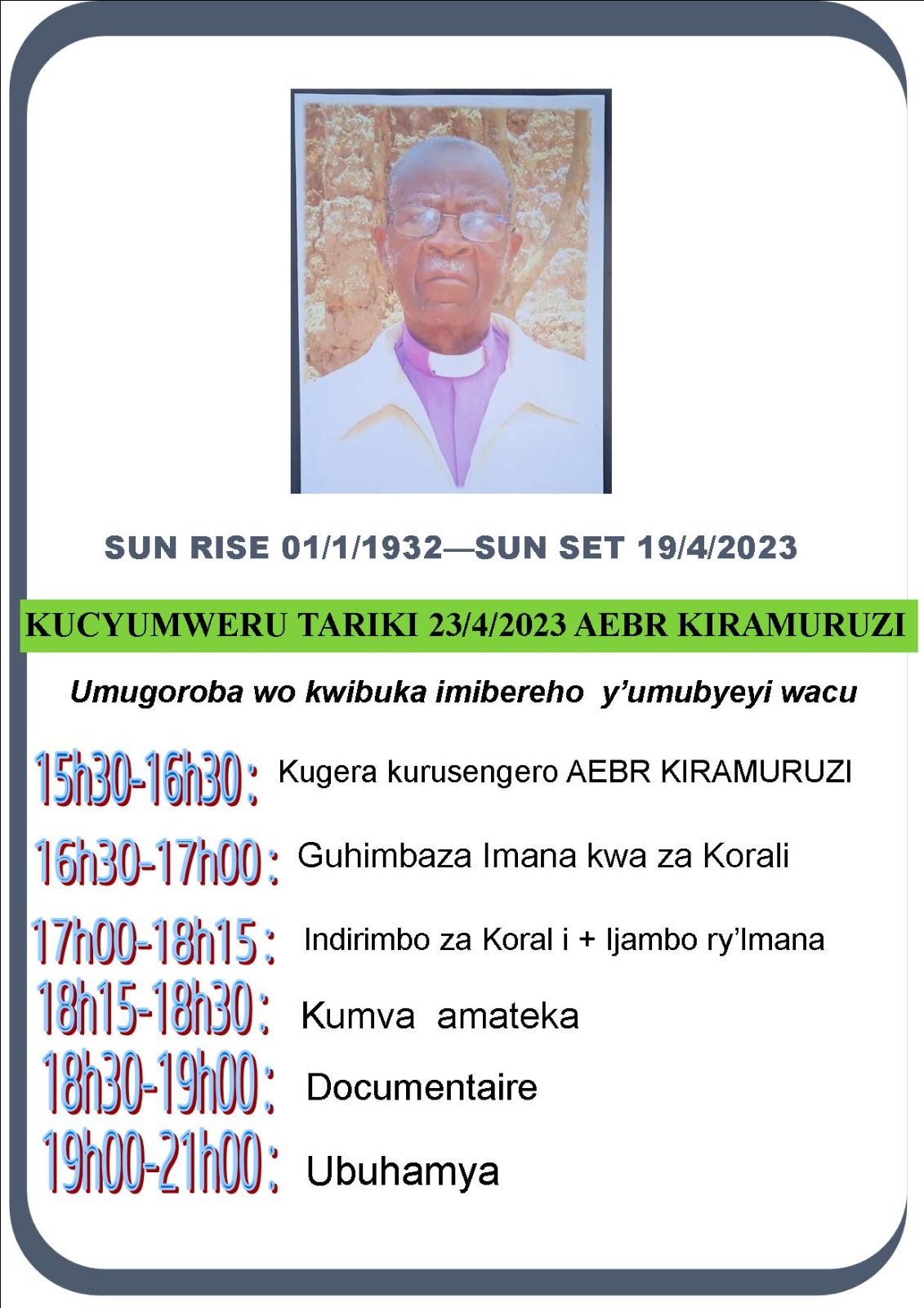 Umugoroba wo kwizihiza ubuzima bwa Rev. Hamuri
