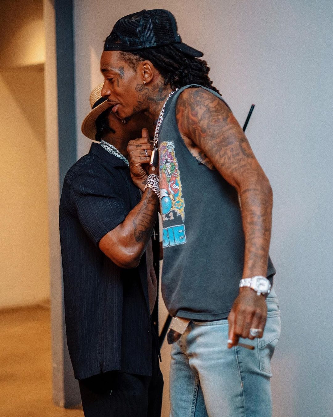 Diamond Platnumz ari kumwe n'umuraperi kabuhariwe Wiz Khalifa muri iyi  minsi aho Simba ari muri Leta Zunze Ubumwe za AmerikaDiamond Platnumz ari kumwe n'umusaza karundura mu muziki Snoop Dogg, uwambaye umupira w'amaboko magufi akaba ari umwe mu bajyanama be witwa Tale