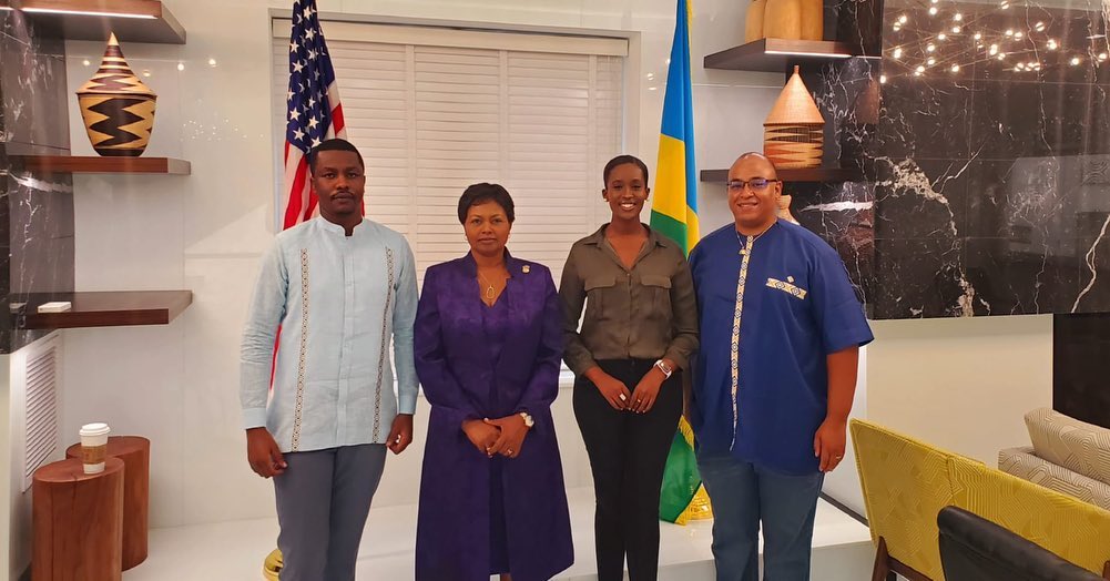 Ambasaderi Mathilde Mukantabana yakiriye mu minsi ishize abarimo Miss Meghan uri mu bategura Miss Rwanda ubwo baheruka muri Leta Zunze Ubumwe z'Amerika