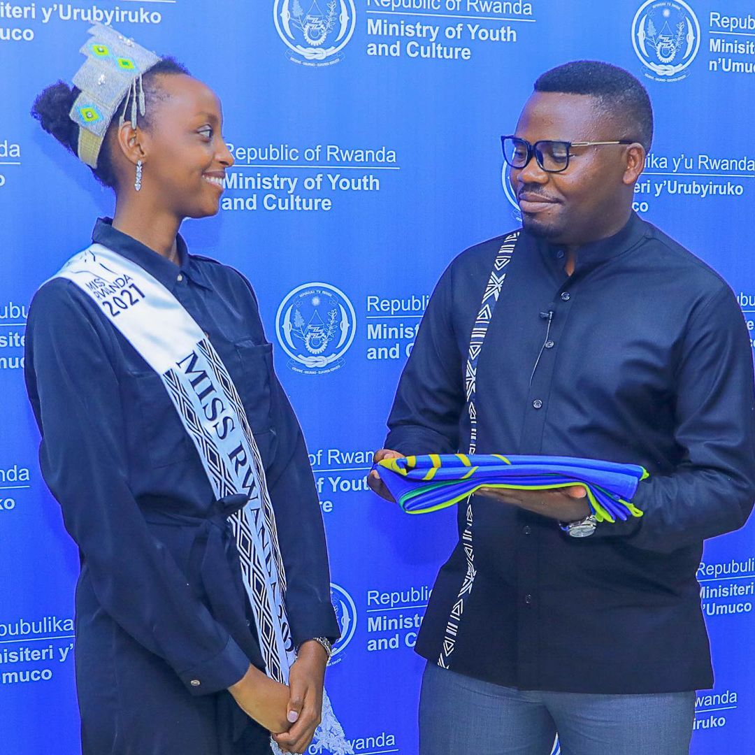 Minisitiri Bamporiki Eduard yabanje guha impanuro Miss Ingabire Grace mbere y'uko yerecyeza muri Puerto Rico ahagiye kubera amarushanwa y'ubwiza