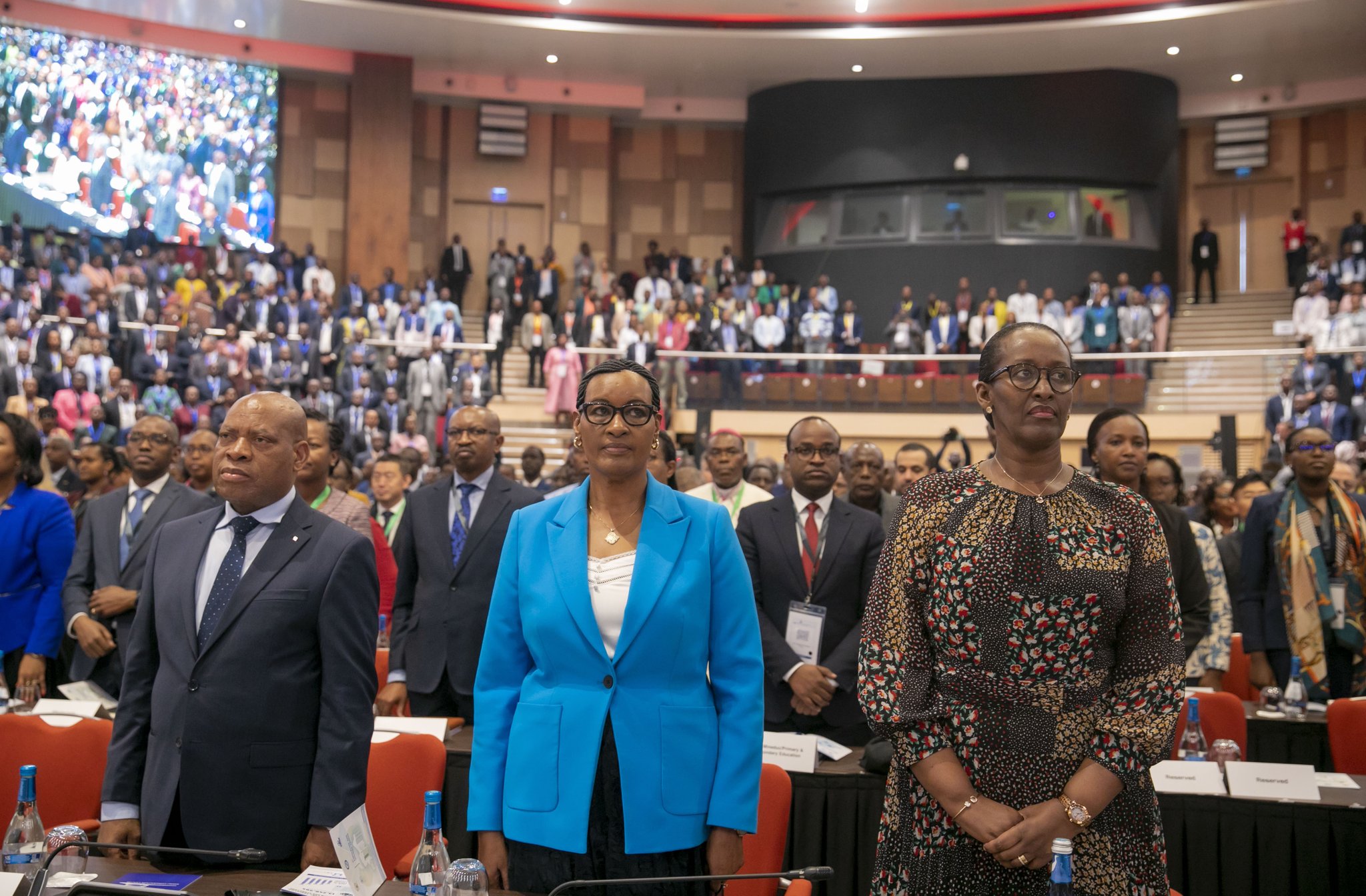 Uhereye iburyo: Madamu Jeannette Kagame, Perezida w'Inteko Ishinga Amategeko Umutwe w'Abadepite, Mukabalisa Donatille na Perezida w'Inteko Ishinga Amategeko, Umutwe wa Sena, Dr Kalinda François Xavier