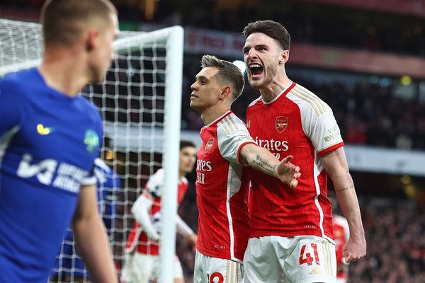 Ku munota wa 4 gusa Arsenal yahise itanga Chelsea iyiterekamo igitego cya 1 gitsinzwe na Léandro Trossard ku mupira yahawe na Declan Rice.