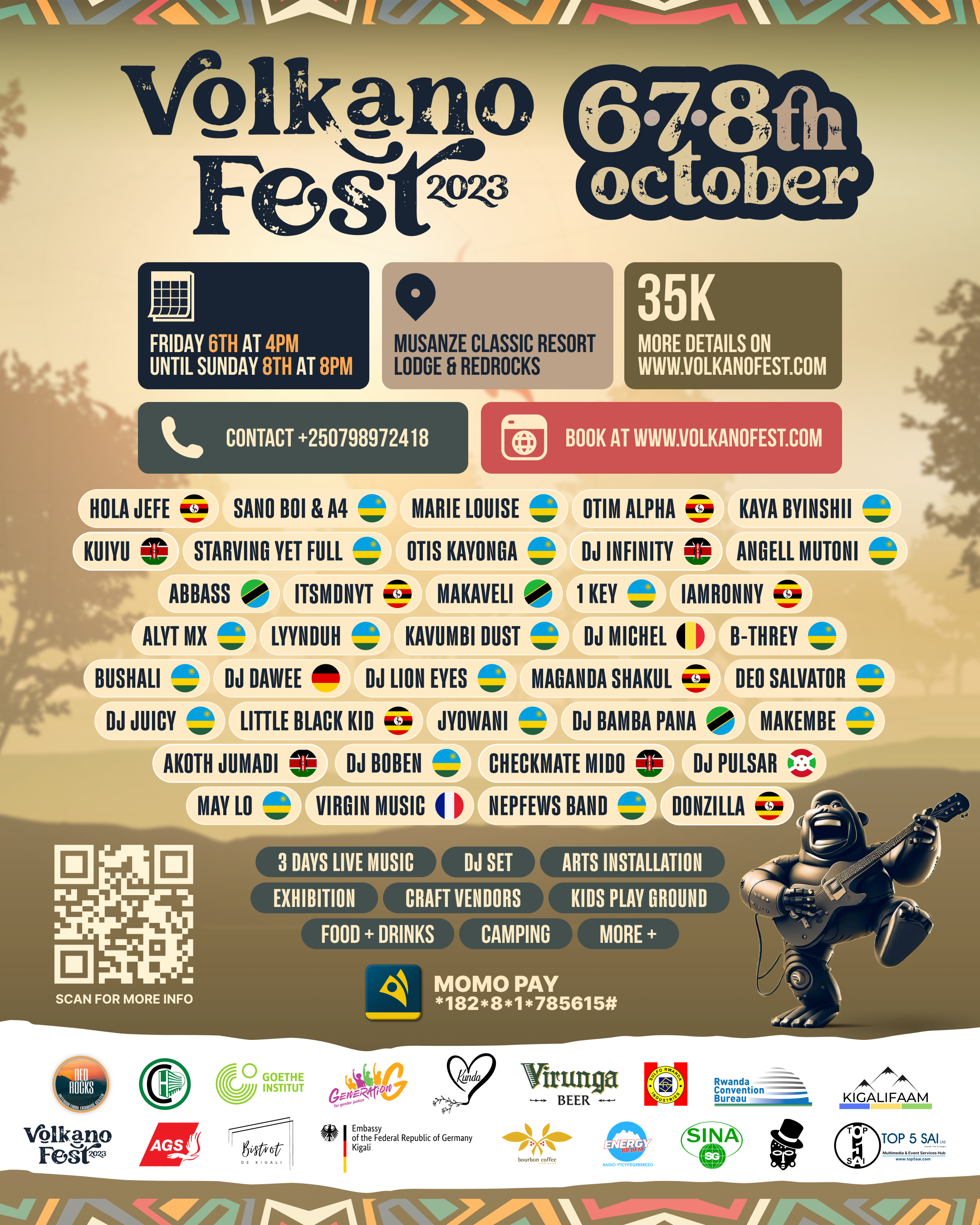 Abahanzi barenga 40 barimo batanu bo mu Rwanda batanu barimo Bushali, Angell Mutoni na Deo Salvator bagiye guhurira mu iserukiramuco ryiswe ‘VolkanoFest’ rigiye kuba ku nshuro ya mbere.