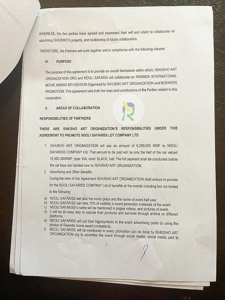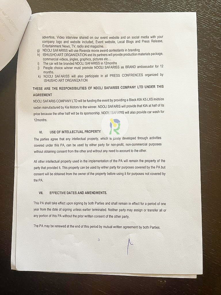 Nta masezerano Usanase Bahavu yigeze agirana na Ishusho Arts cyangwa se Ndoli Safaris ajyanye no guhabwa iyi modoka yatsindiye.