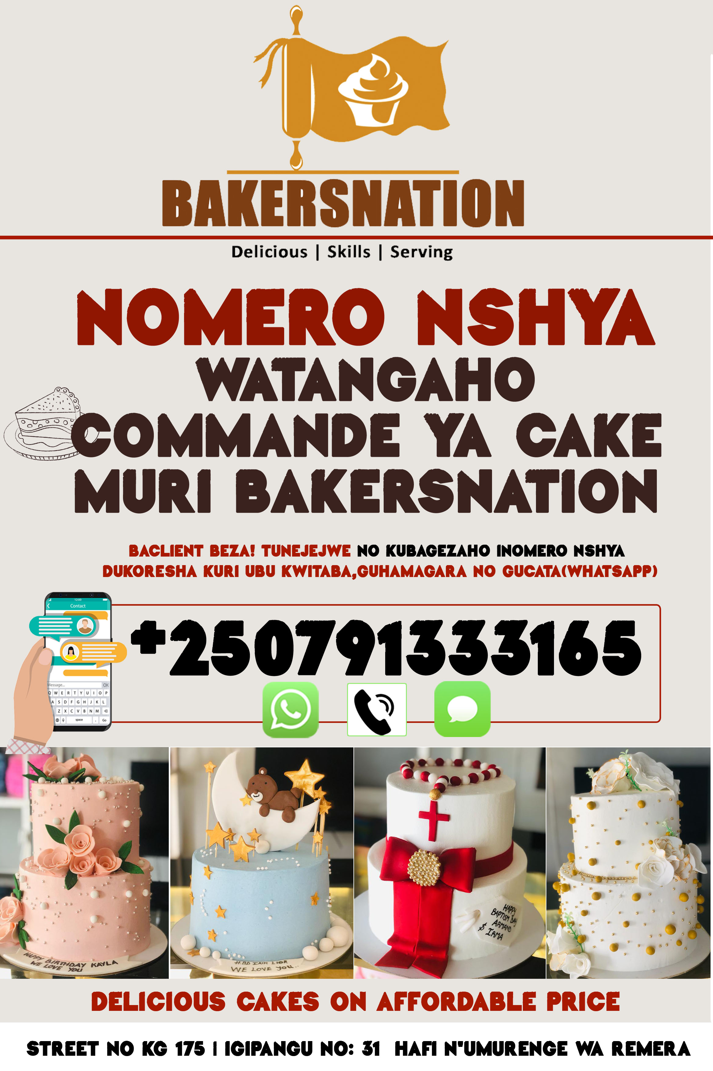 Kuri ubu Bakersnation yahinduye numero wakoraho Order, inshya bari gukoresha ni: 0791333165. Bahamagare barakwakira neza kuri Phone Call na WhatsApp kuko iyari isanzwe yagize ikibazo.