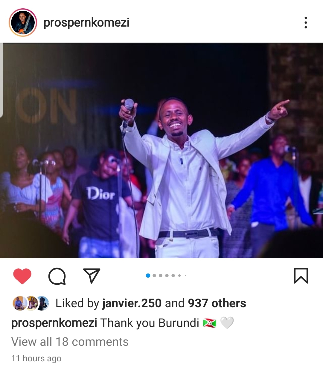 Prosper Nkomezi yashimiye cyane u Burundi mu butumwa yanyujije kuri Instagram