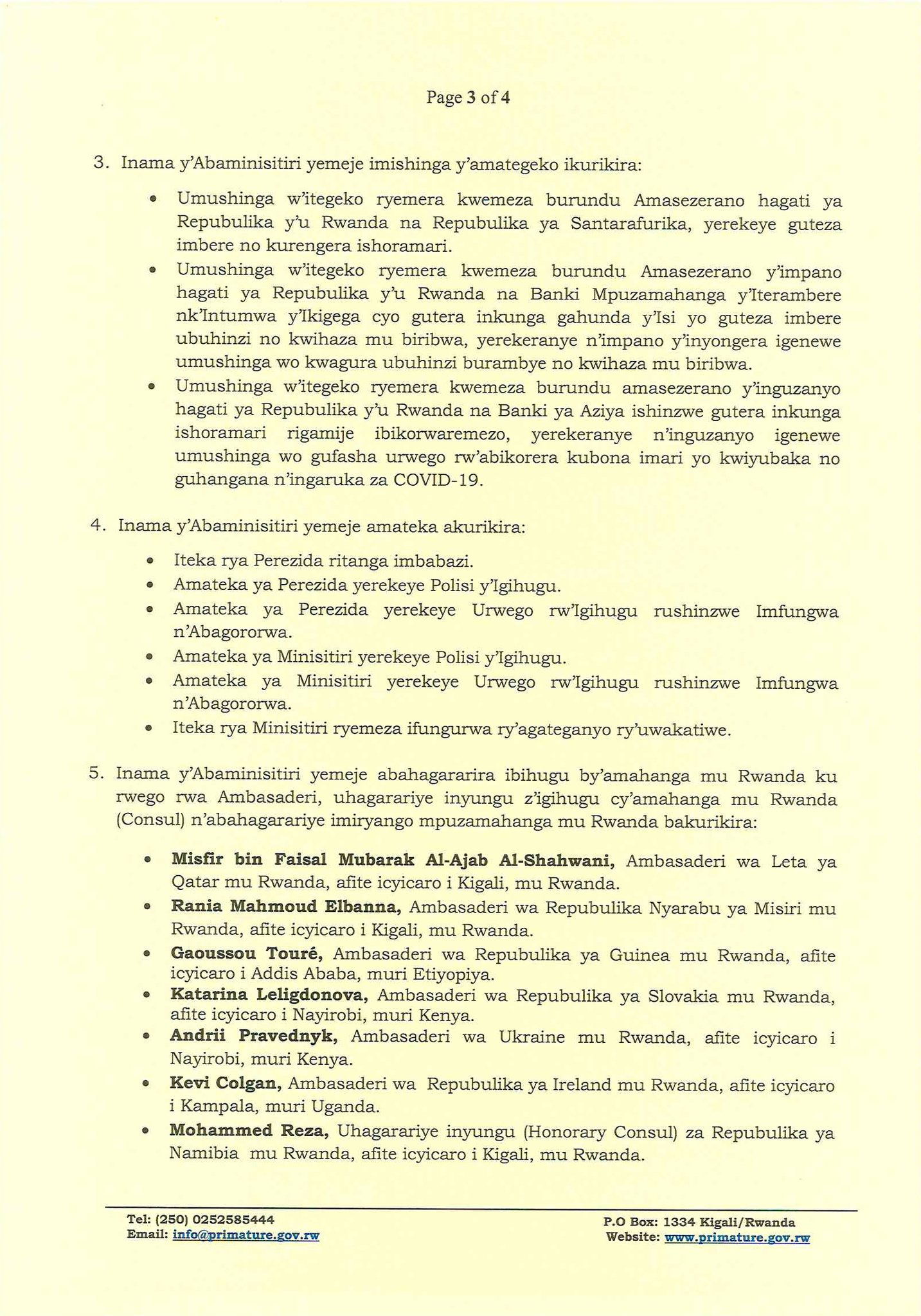 Ibyemezo by'Inama y'Abaminisitiri yateranye kuri uyu wa Gatanu