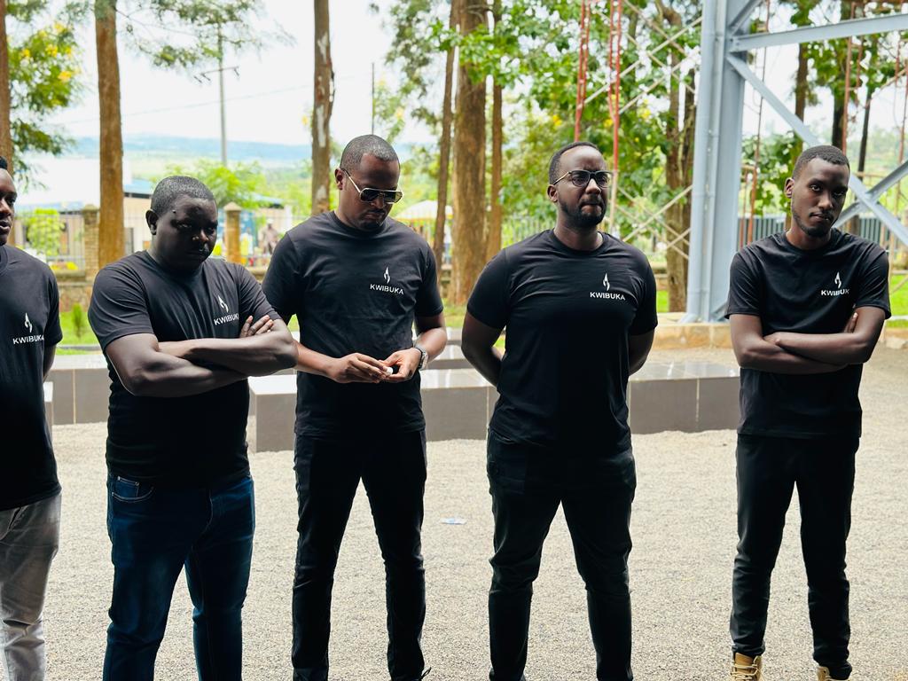 yasuraga uru rwibutso rwa Ntarama ari kumwe n’iri tsinda bakorana, baboneyeho