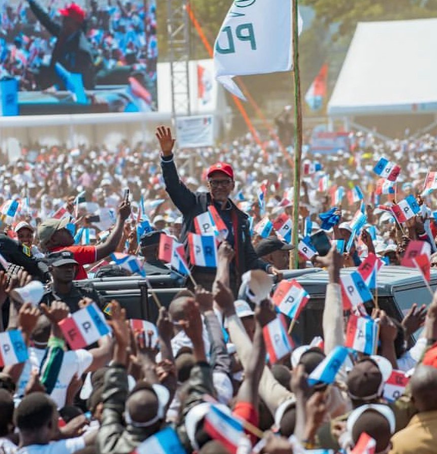 Bull Dogg yifashishije amafoto yo ku munsi wa Kabiri w’ibikorwa byo kwiyamamaza aho Perezida Kagame umukandida wa FPR Inkotanyi yiyamamarije mu Karere ka Rubavu, akurira ingofero Perezida Kagame.