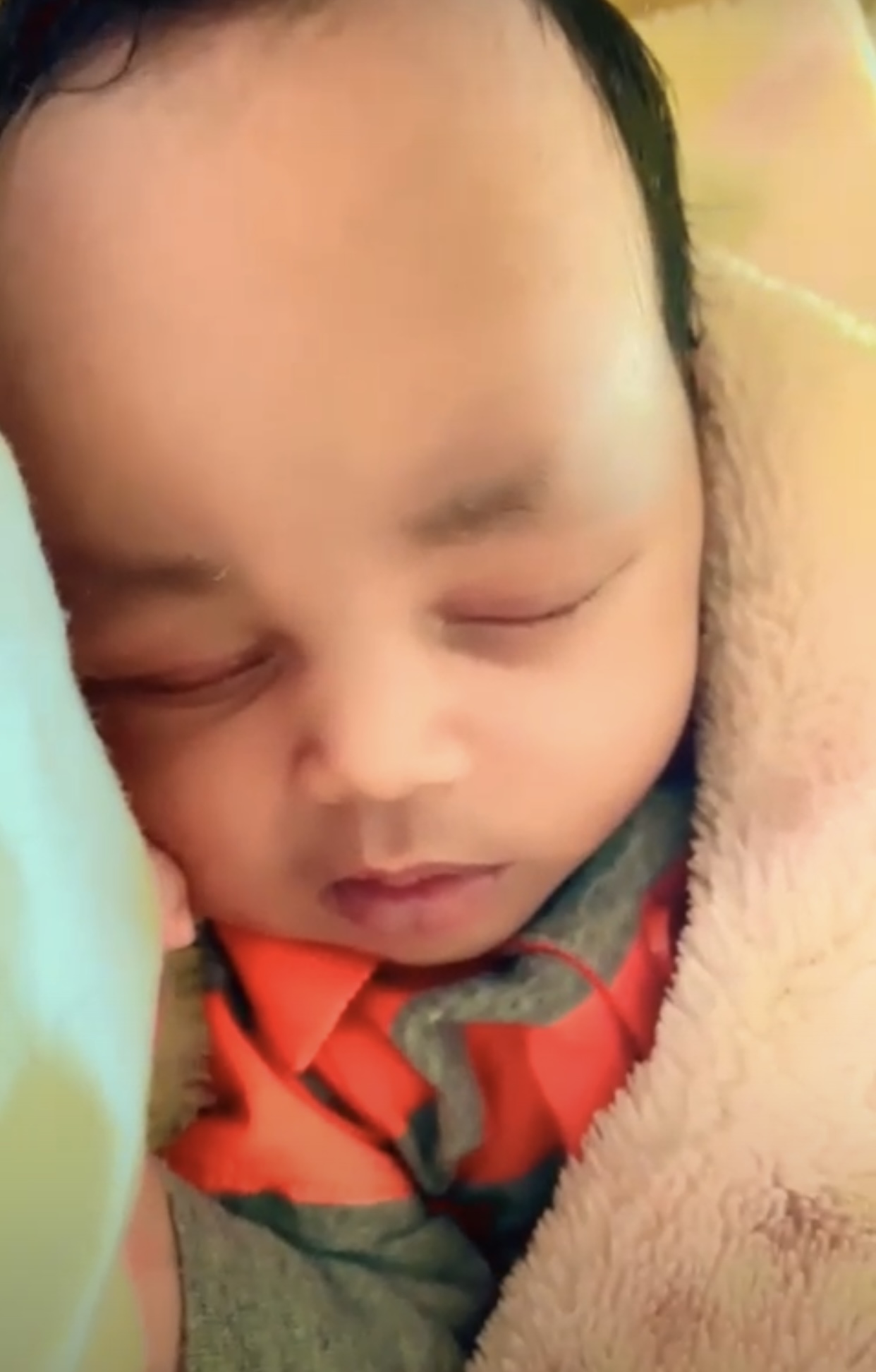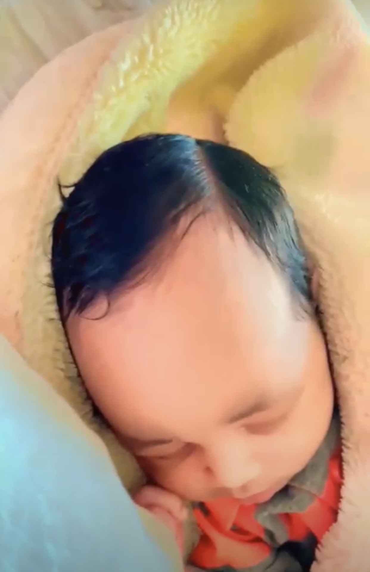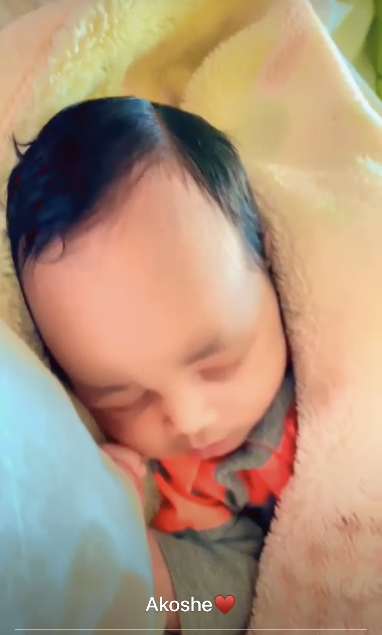 Alliah Cool yasangije abamukurikirana amashusho mato y’umwana we asinziriye ubona ko amaze kumwitaho, ati: "Akoshe "