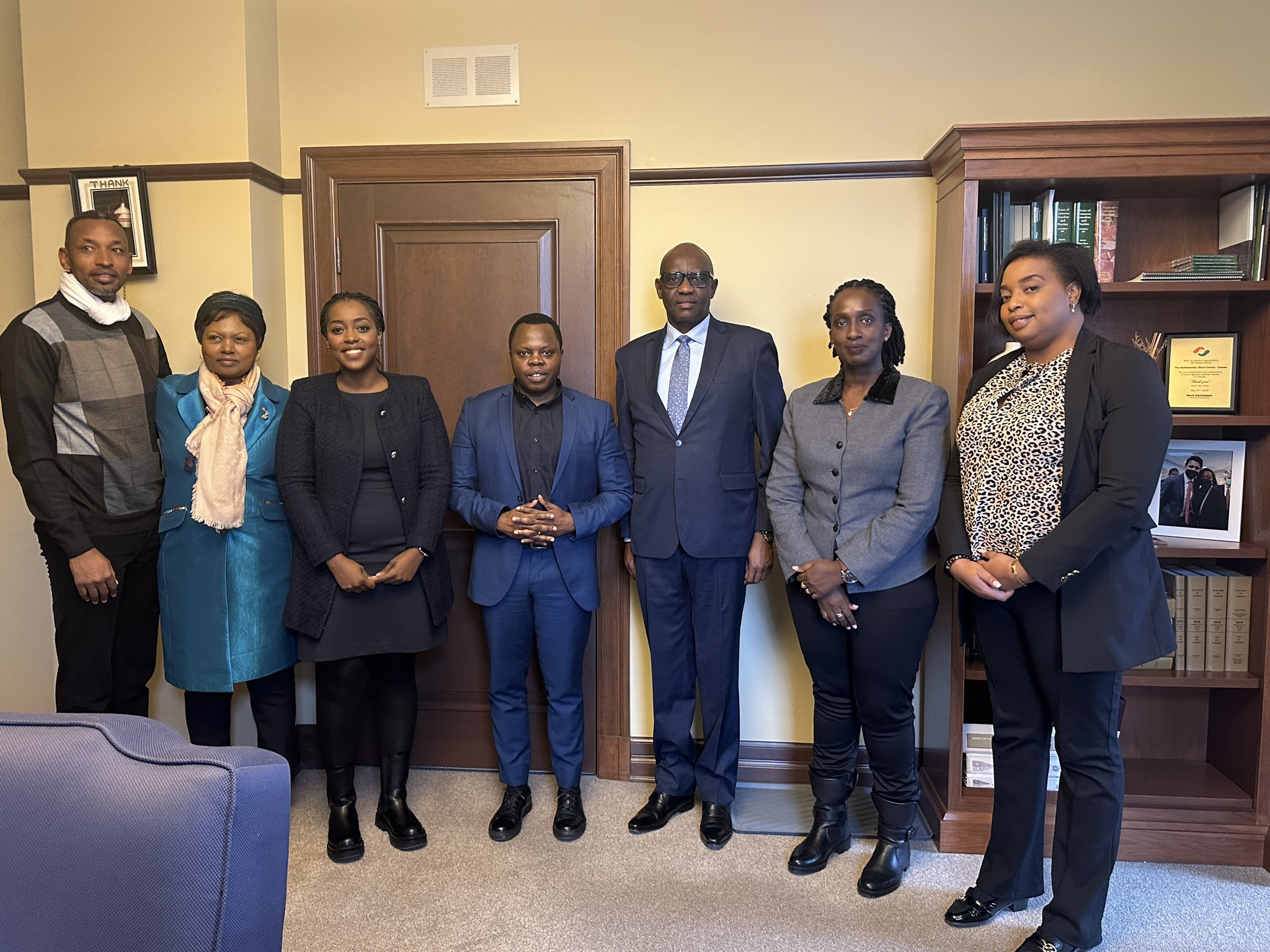 Aha Depite Kayabaga ari mu bakiriye abarimo Ambasaderi Mukantabana, Ambasaderi Higiro na Minisitiri Dr Abdallah Utumwatwishima ubwo bitabiraga Rwanda Youth Convention 2023 muri Canada