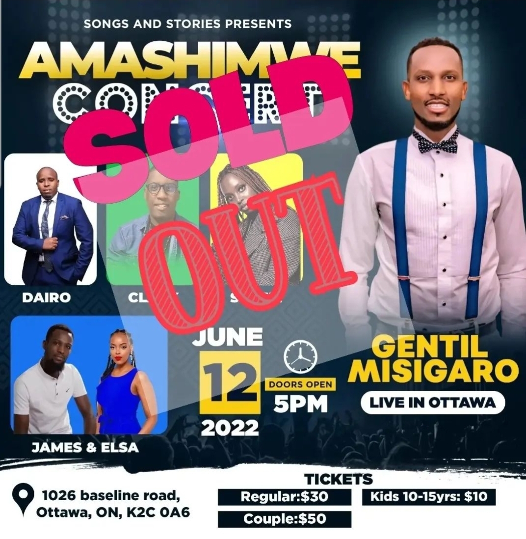 Iki gitaramo cyiswe "Amashimwe Concert" cyabaye kuri iki Cyumweru tariki 12 Kamena 2022 kibera mu mujyi wa Ottawa kuva saa kumi n'imwe z'umugoroba. Gentil Misigaro yari ari kumwe n'abaramyi batandukanye barimo James & Elsa, Soleil, Clark na Dairo. Kwinjira byari amadorali 30 (30,000 Frw) mu myanya isanzwe, amadorali 50 kuri 'couple' ndetse n'amadorali 10 ku bana bafite imyaka 10-15. Salle yabereyemo ki gitaramo yakubise iruzura, bamwe babura aho bicara.