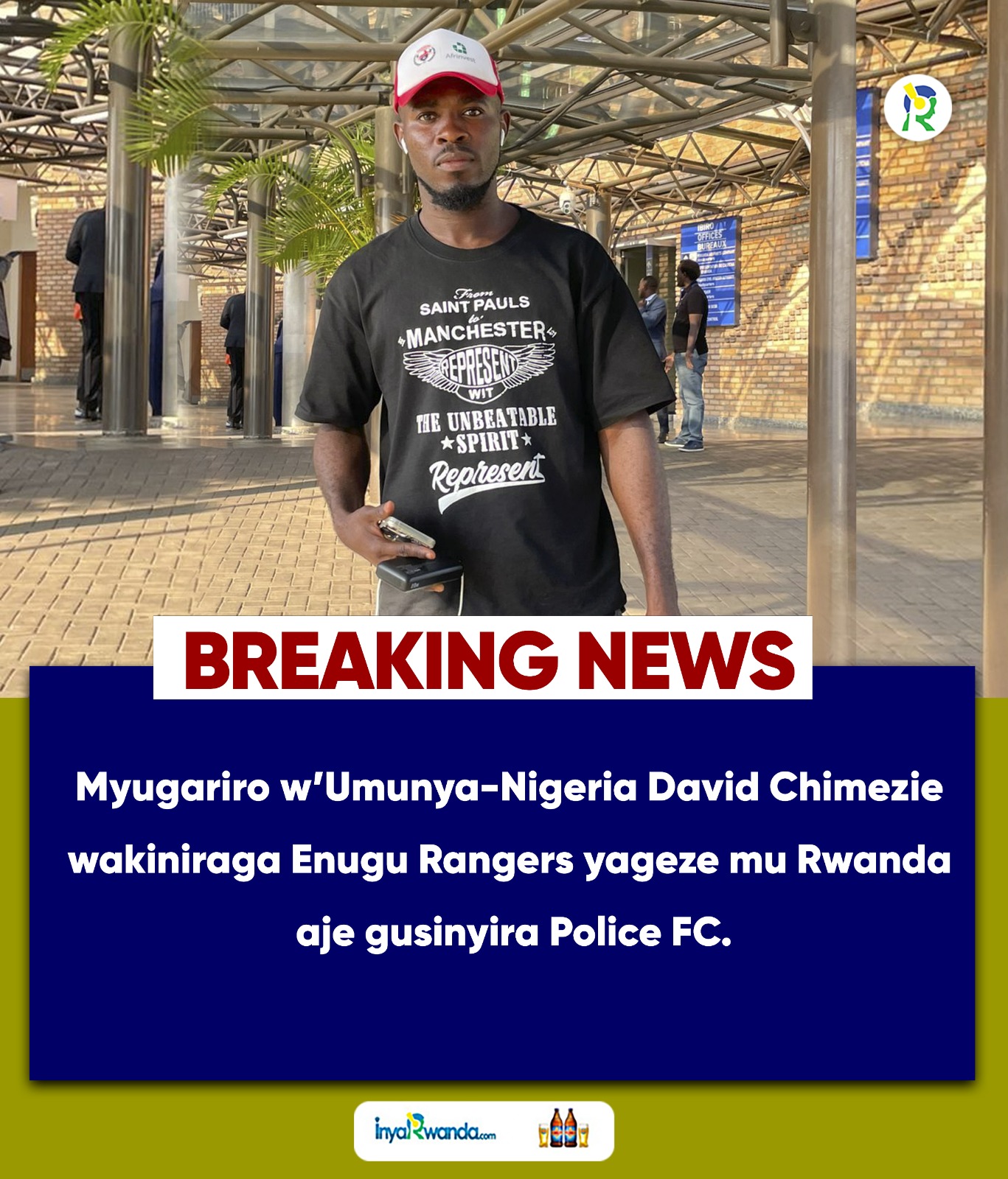 Myugariro ukomoka muri Nigeria David Chimezie wakiniraga ikipe ya Enugu Rangers yo muri Nigeria yageze mu Rwanda aho aje gusinyira Police FC.