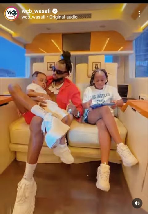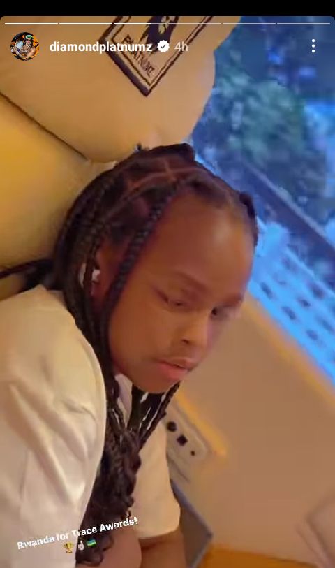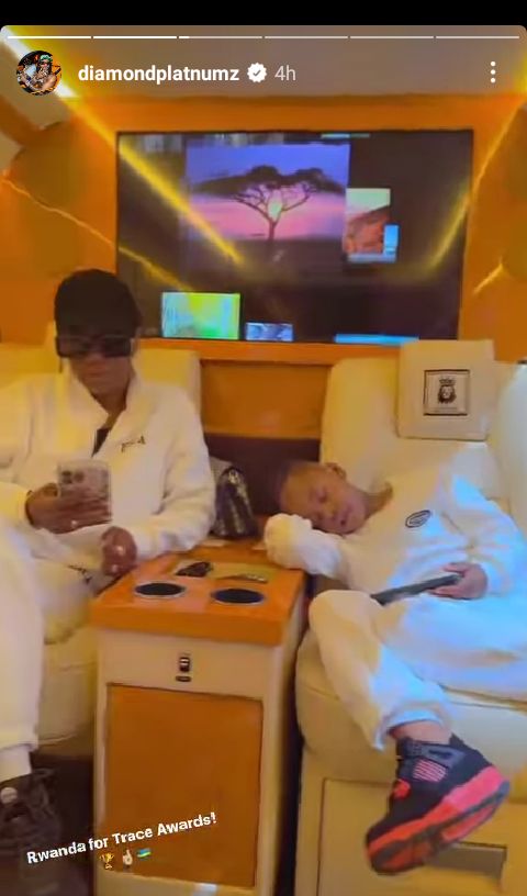 Ni mu mashusho banyujije ku rukuta rwa Instagram ya Label abereye umuyobozi, WCB Wasafi. Amugaragaza ari kumwe n'abana babiri yabyaranye na Zari n'undi yabyaranye na Tanasha, aho baba bari mu modoka nziza cyane baza mu Rwanda, barenzaho amagambo 'Umuryango wa Diamond Platnumz ugiye i Kigali muri Trace Awards'.