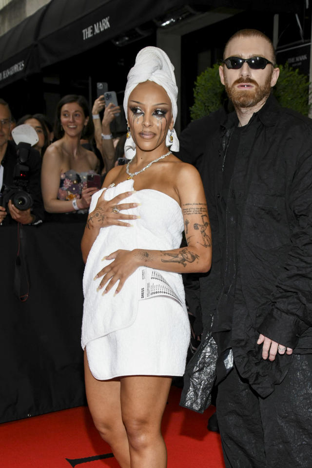 Nyamara nubwo Doja Cat yahawe inkwenene kubera kwambara isume gusa, ntibyatinze yikojeje hirya agaruka ku itapi itukura yambaye umupira muremure w'umweru ubonerana kandi utose kuburyo wagirango yarawuvanye muri pisine. Utu dushya Doja Cat yakoreye mu birori bya Met Gala nitwo turi gutuma agarukwaho cyane ku mbuga.
