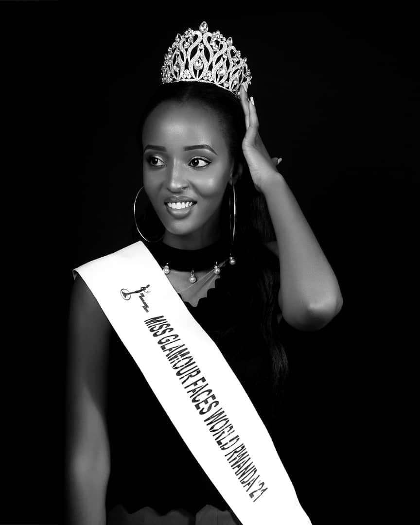 uhabwa ikamba rya Miss Glamour faces world Rwanda 2021.
