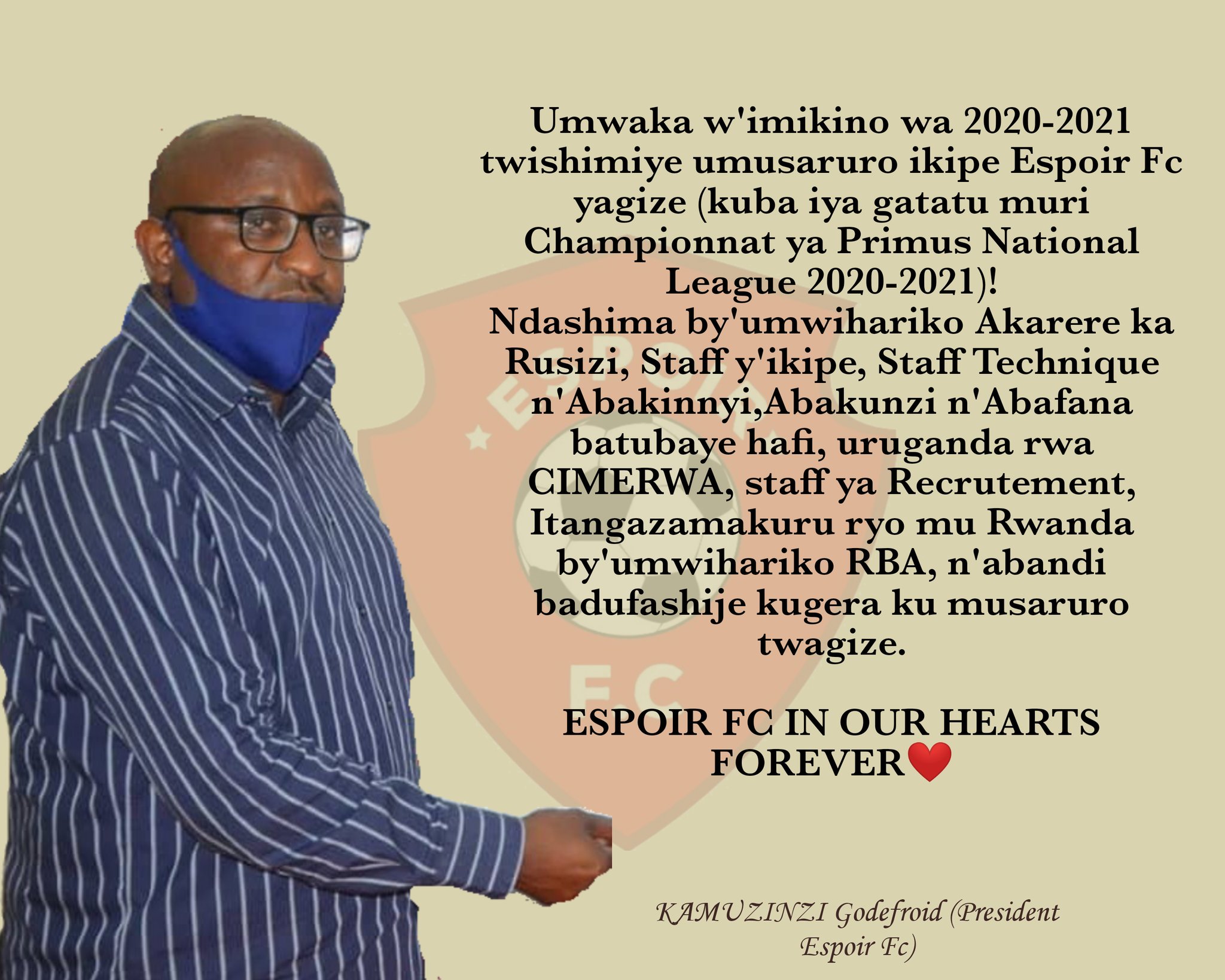 Comite ya Espoir FC: President : Kamuzinzi Godefroid, V/P 1 : Amani Casimir, V/P2: Ngiruwonsanga Theo, SG: Habimana François.