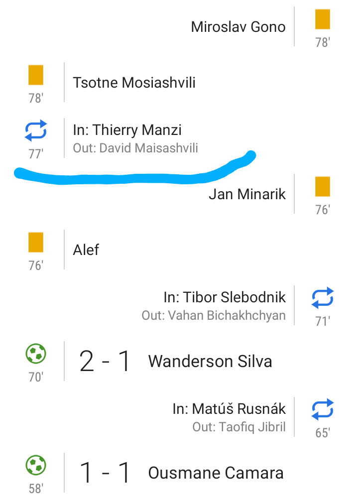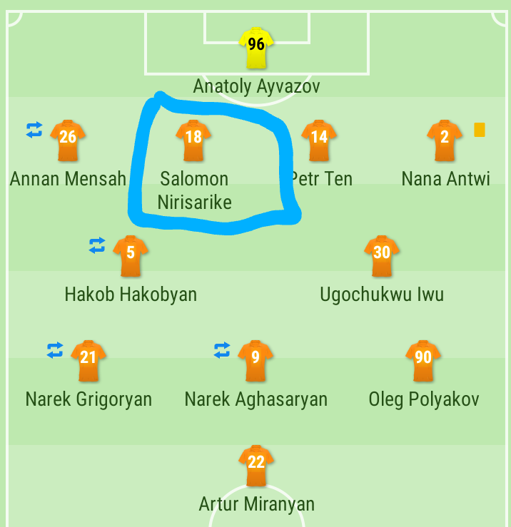 Indi kipe yasezerewe ni FC Urartu ikinamo myugariro Nirisarike Salomon. Urartu yatsinzwe igitego kimwe ku busa kandi nabwo umukino ubanza yari yatsinzwe igitego kimwe ku busa iba isezerewe ku bitego 2-0 Nirisarike Salomon yabanje mu kibuga ndetse umukino arawusoza.
