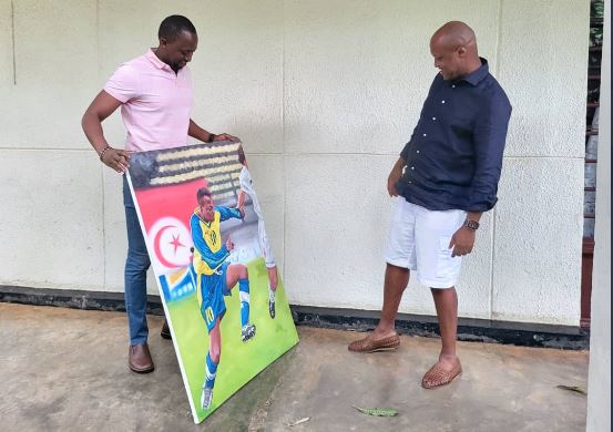 y'igihangano kiriho ifoto ye ubwo yari akiri umukinnyi.