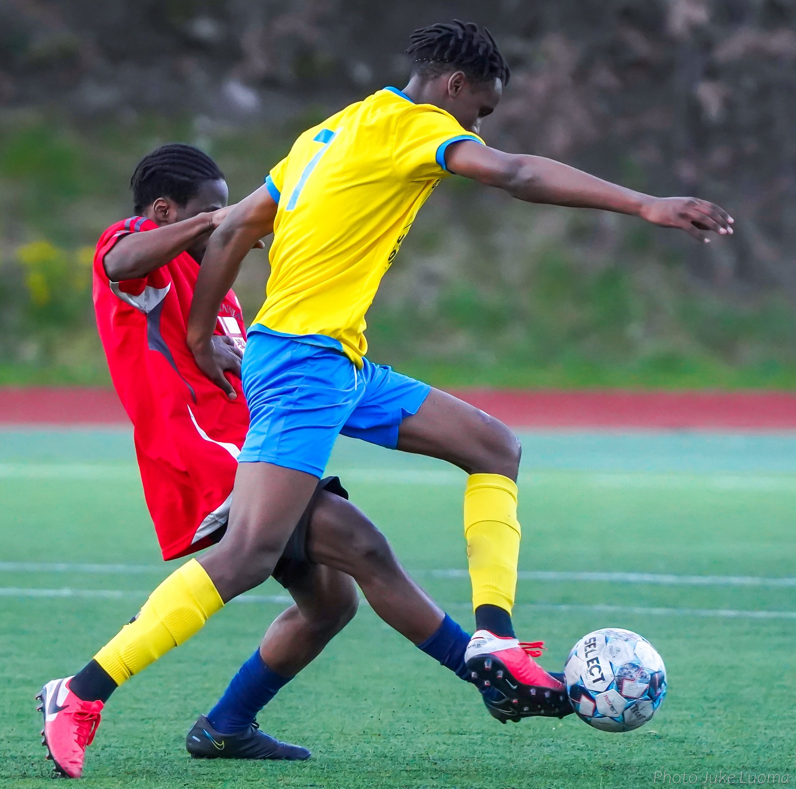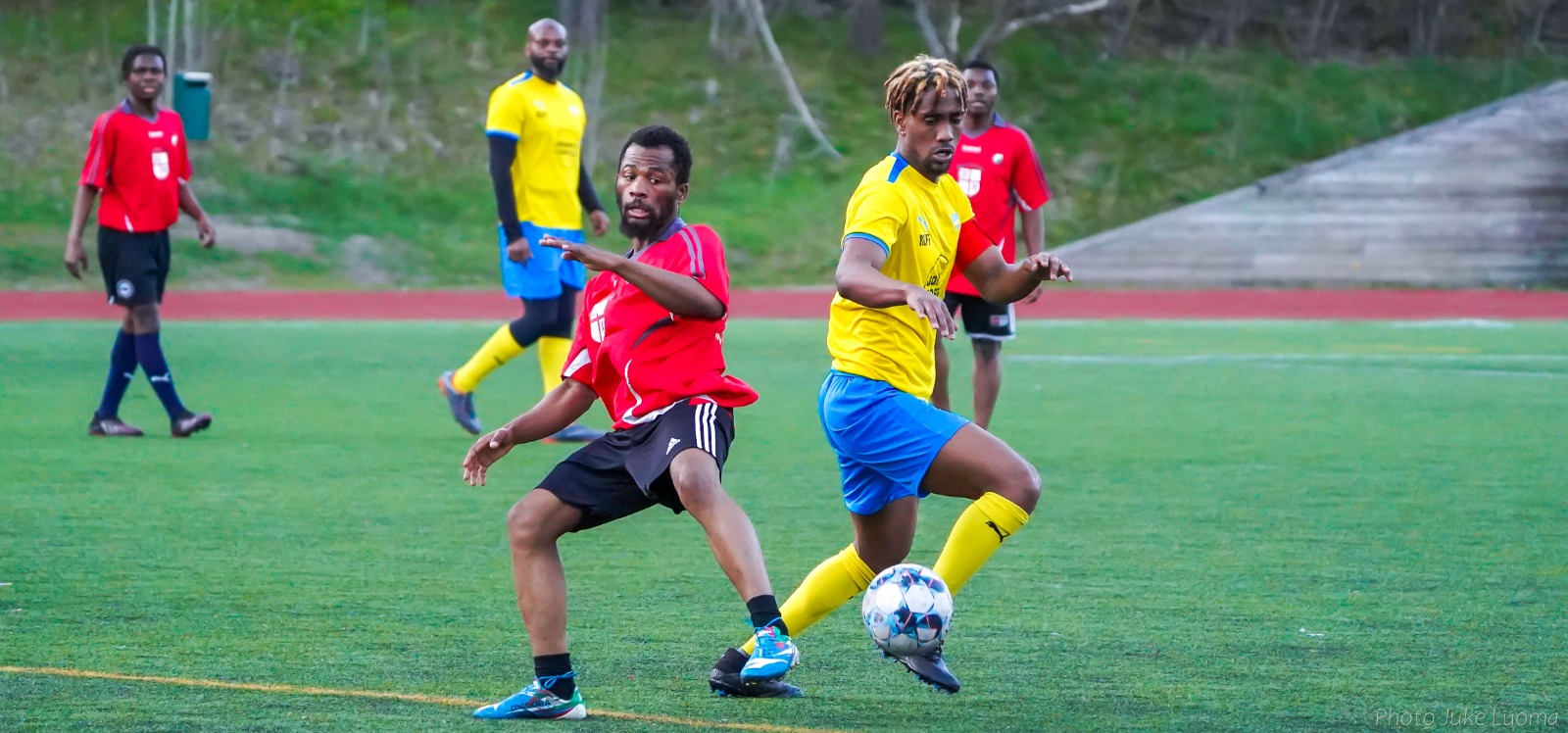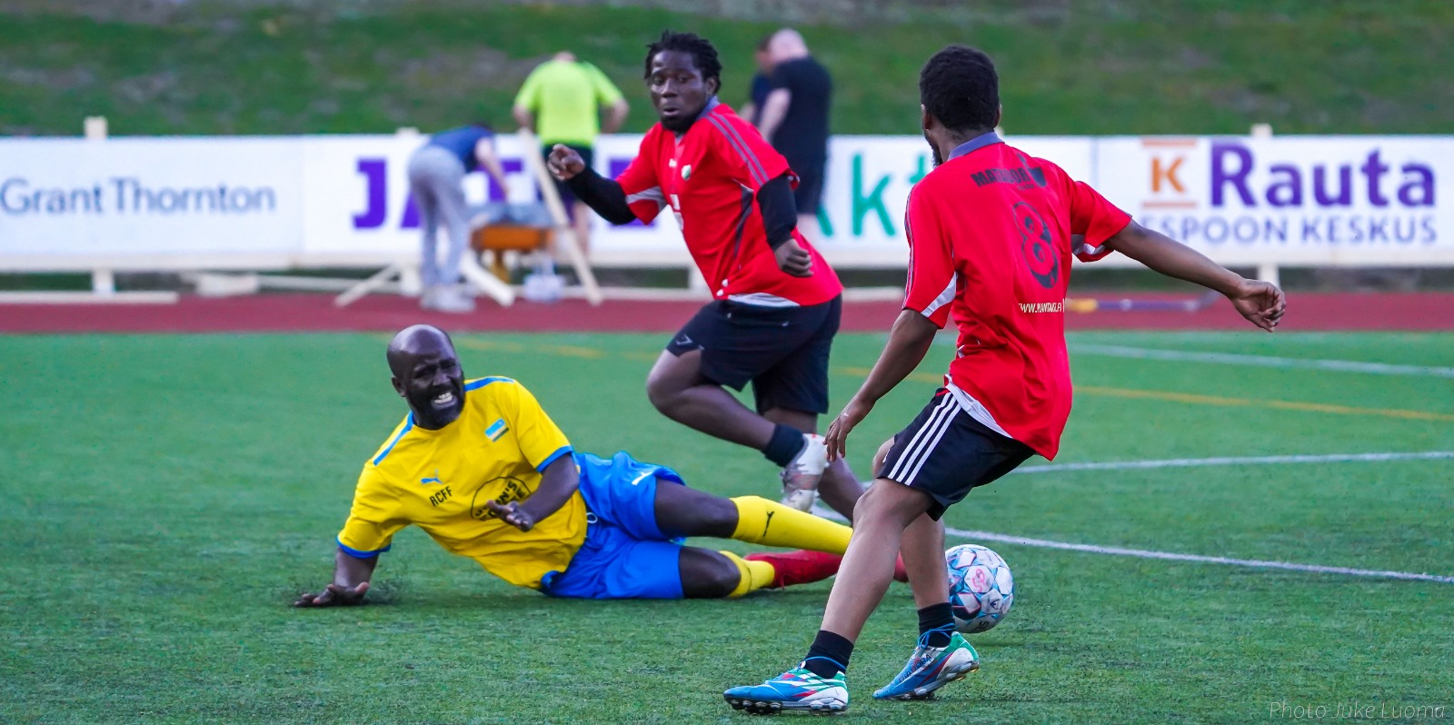 Moises Nshimiyimana ukina mu cyiciro cya 3 muri Finland mu ikipe yitwa EsPa Edustus yambura umupira myugariro wa Congo Brazzaville
