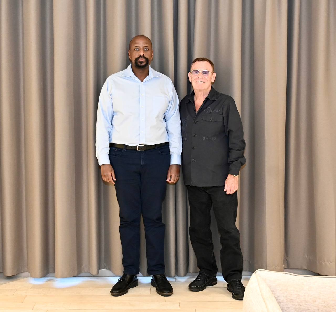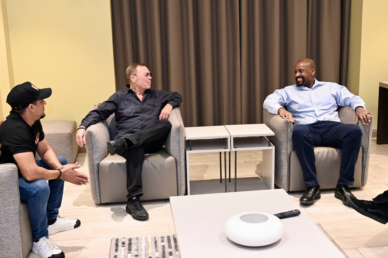 Umuhungu wa Perezida wa Uganda akaba n'Umugaba w'Ingabo z'iki gihugu zirwanira ku butaka, Gen Muhoozi Kainerugaba yakiriye mu biro bye itsinda ry’abanyamuziki ryamamaye ku Isi rya UB40 bari kumwe n’umuyobozi wabo Ali Campbell.