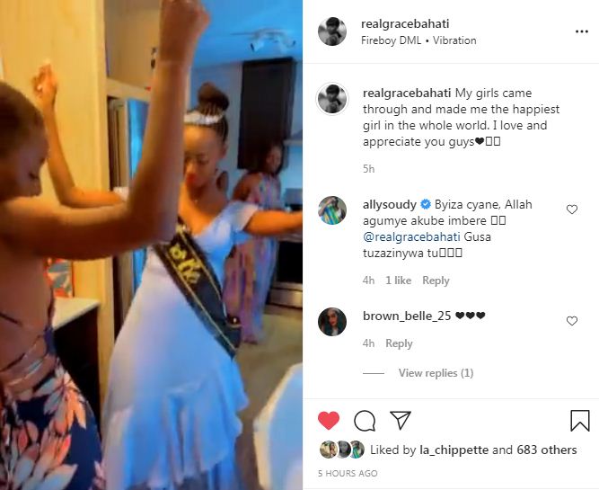 wishimye mu isi, ndabakunda kandi ndabashimiye cyane mwese."Ubutumwa bwa Grace ashima n'inyunganizi ya Ally Soudy yifuriza umugisha w'Imana umugeni