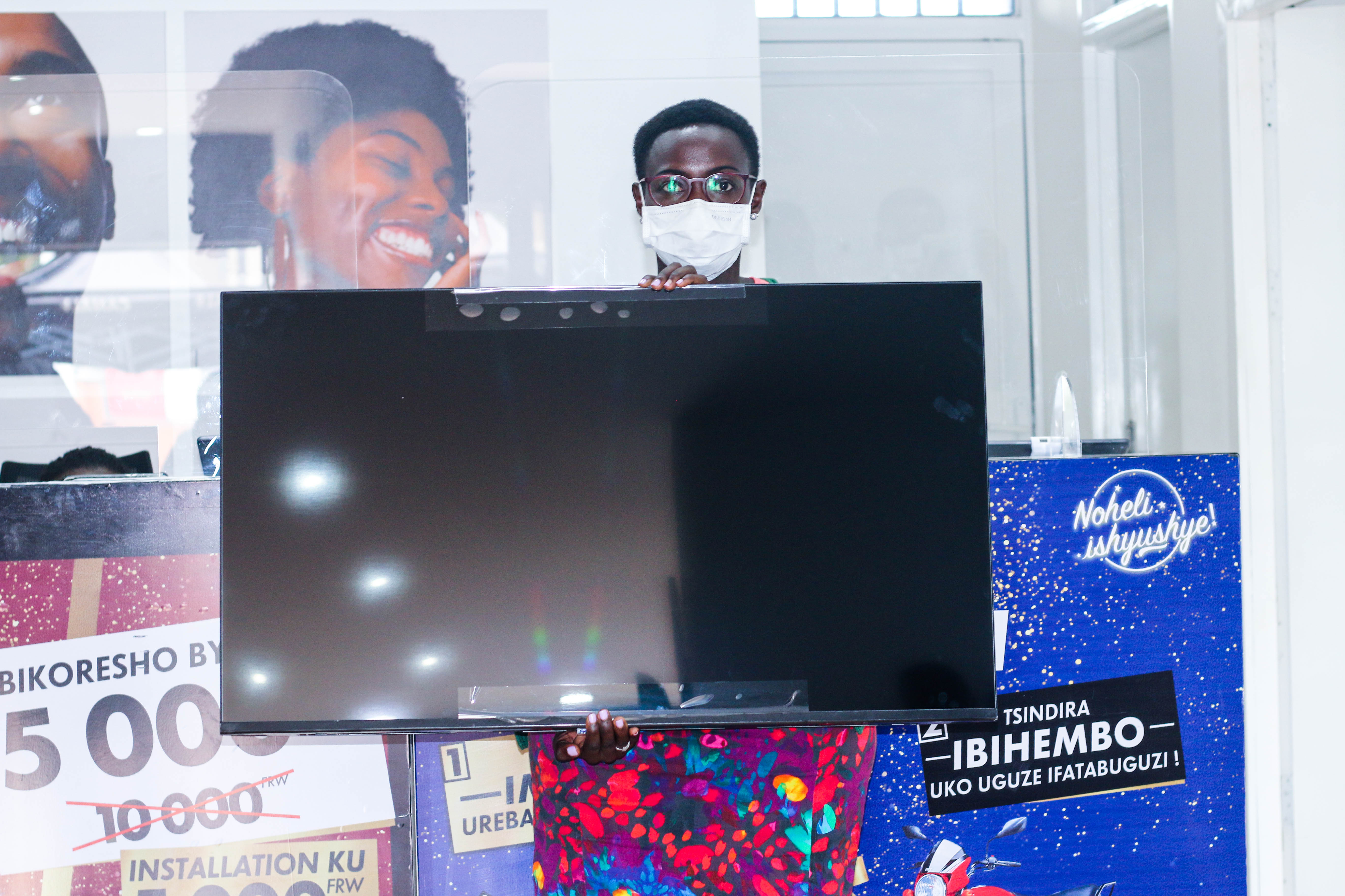 ati «Nshimishijwe no kuba natomboye SmartTV ya puse 43. Nari naguze