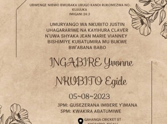 umuhango wo gusezerana Imbere y'Imana n'aho saa kumi n'imwe, hazaba umuhango wo kwakira, inshuti, abavandimwe n'abandi bazaba bitabiriye ubu