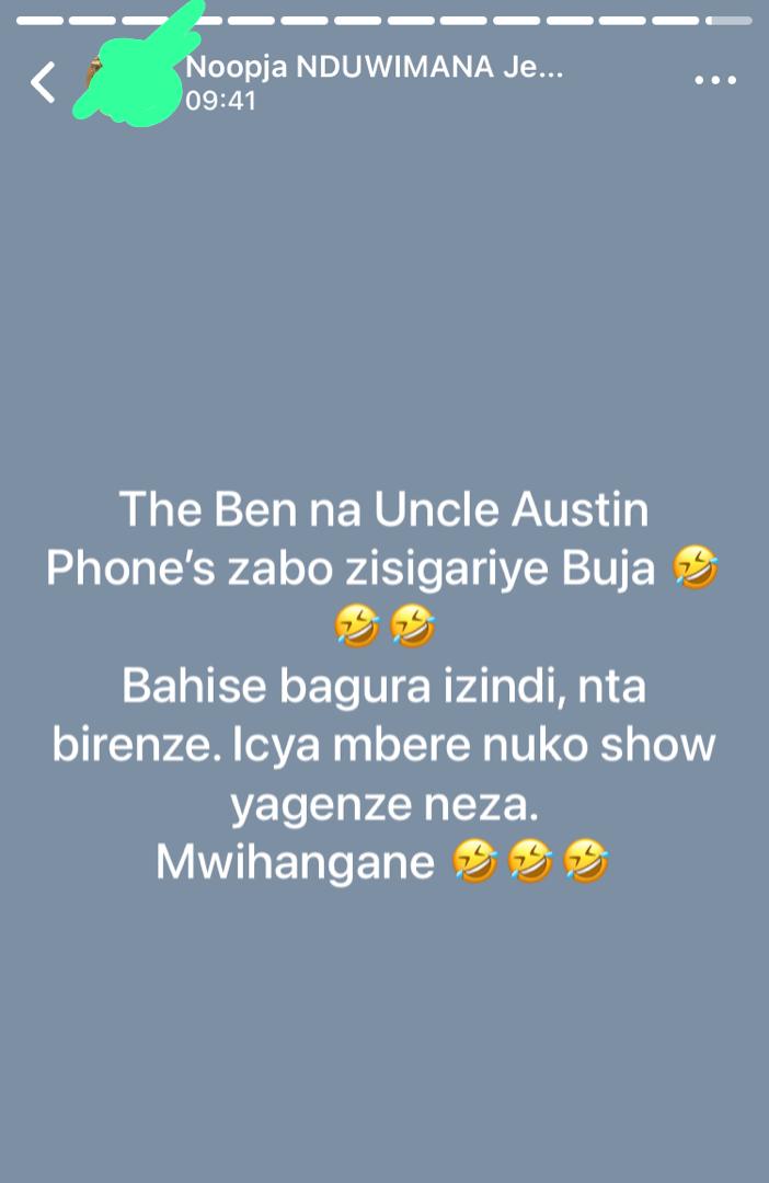 Yagize ati “The Ben na Uncle Austin, Phone zabo zisigaye i Bujumbura [Buja], bahise bagura izindi nta birenze. Icya mbere ni uko Show