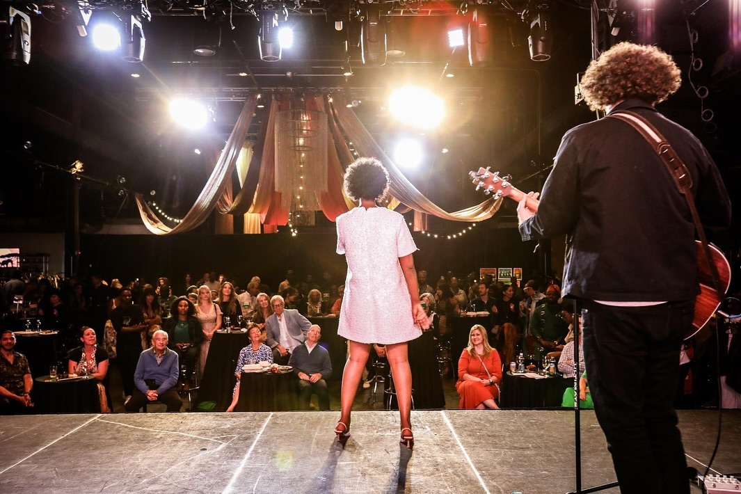 Umuhanzikazi Butera Knowless yataramiye abarenga 600 mu gikorwa cyateguwe n'umuryango ukora ibikorwa bihindura ubuzima bw'urubyiruko cyane cyane muri Afurika uzwi nka Global Livingston Institute, kikaba cyabereye mu nyubako Kamala Harris aherutse kwiyamamarizamo.