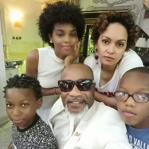 Koffi Olomide, umugore we n'abana babo. Iyi foto yafashwe vuba aha nyuma y'uko Koffi arekuwe aho yashijwaga ibirego byo guhohotera abagore