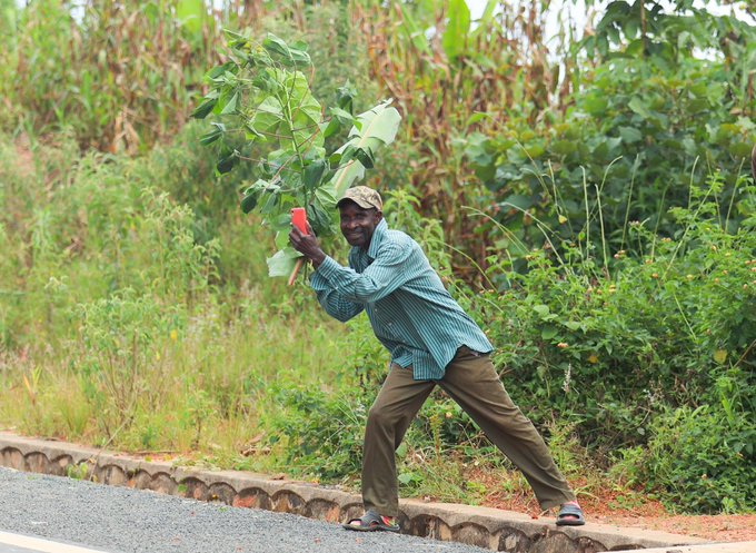 Aha niho hafatiwe ifoto y'umusaza afite amashami y'isombe, ikinyomoro n'urukoma abyifashisha mu gufana ariko kikaba n'ikimenyetso cy'ibihingwa byera muri iri ibi bice aho igare ryanyuze uyu munsi.