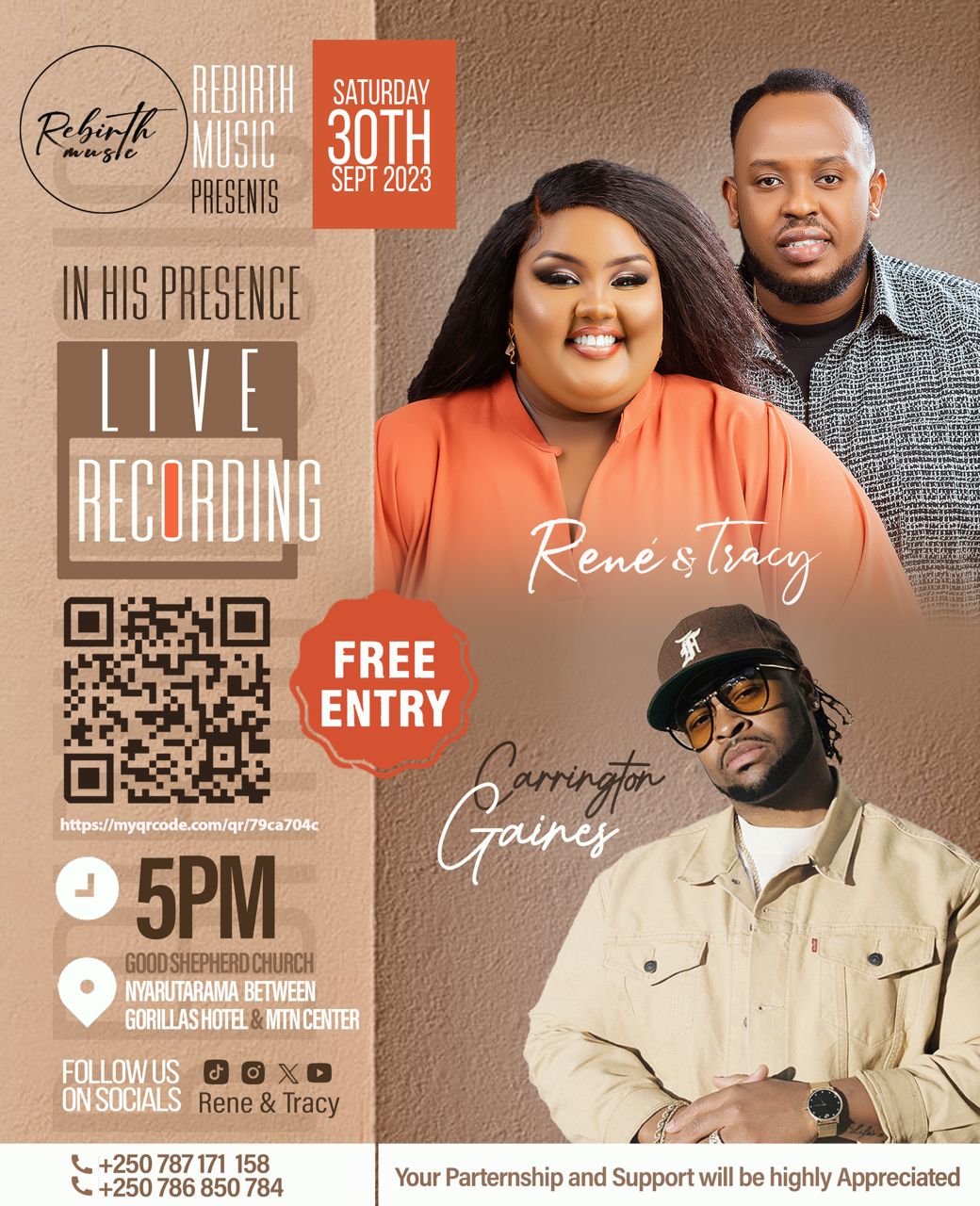 Ni igitaramo bateguye babinyujije muri Rebirth Music isanzwe ari Label yabo batangije muri 2019, ifasha abaramyi mu kubashyigikira mu murimo bakora. Iki gitaramo bise "In His Presence Live Recording" kizaba tariki 30 Nzeri 2023, i Nyarutarama kuri Good Shephered Church kuva saa kumi n'imwe z'umugoroba, kandi kwinjira ni ubuntu.