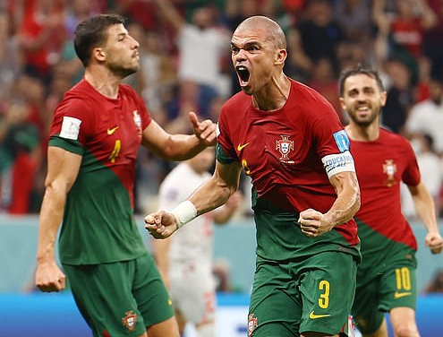 Ku munota wa 33 Pepe uri mu bashaje mu gikombe cy'isi yatsinze igitego cya 2, ku mupira wari uturutse muri koroneri itewe na Bruno Fernandes. Igice cyambere cyarangiye Portugal ariyo iyoboye, n'ibitego 2 kubusa bwa Switzerland.