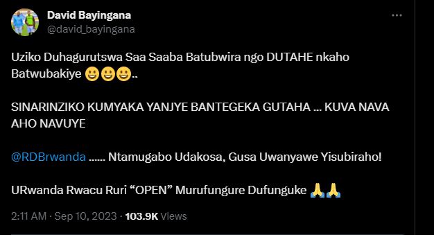umunyamakuru ubimazemo igihe kinini, Bayingana David yanditse kuri konti ye ya