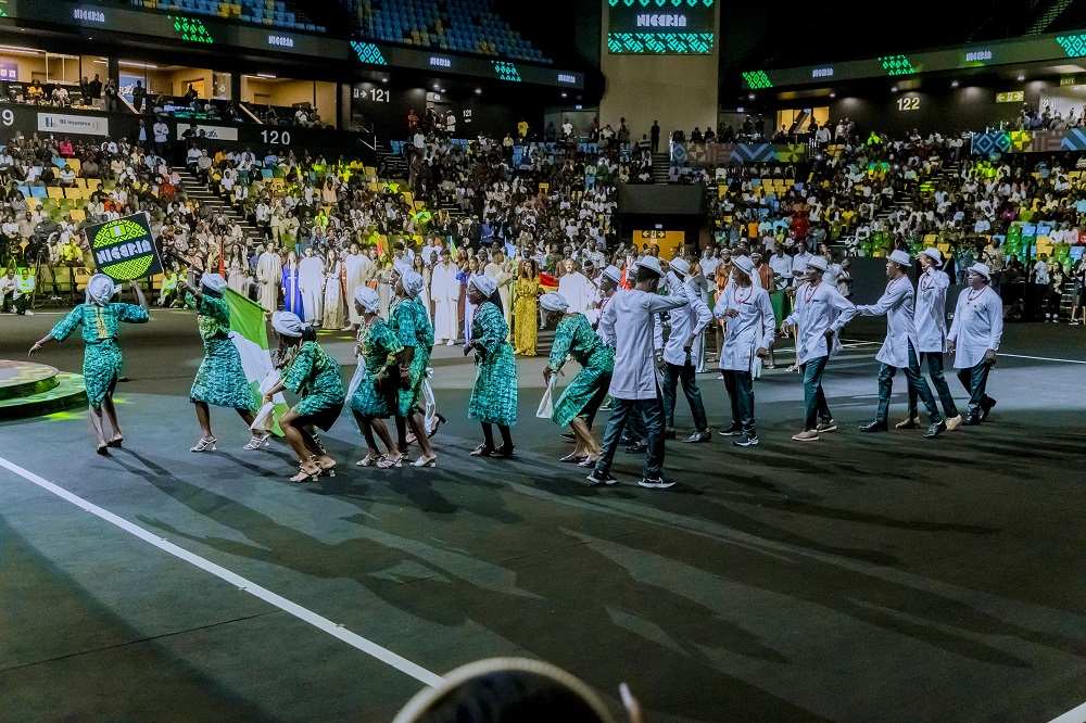 Abasore n'inkumi bagiye baserukana amadarapo y'ibihugu by'abo ari nako babyina zimwe mu ndirimbo zo mu gihugu cyabo