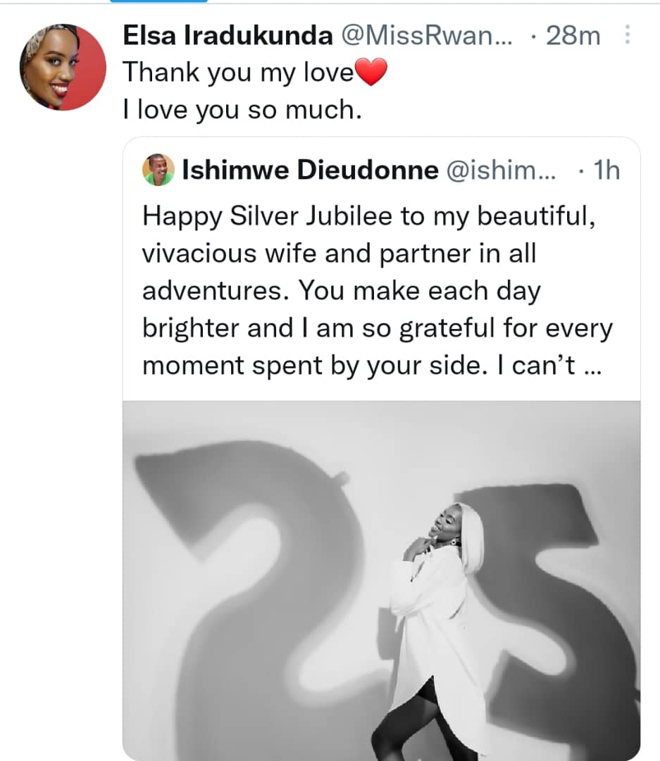 Mu masaha make ashize, Prince Kid yanyarukiye kuri konti ye ya Twitter agenera ubutumwa umukunzi we Miss Iradukunda Elsa wujuje imyaka 25 y'amavuko, amubwira ko uyu munsi we ari isabukuru y’umuringa kuri we.