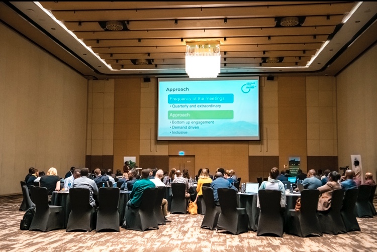 Uhagarariye African Circular Economy Network (ACEN) asobanurira abitabiriye ibyo yabateguriye “Presentation "