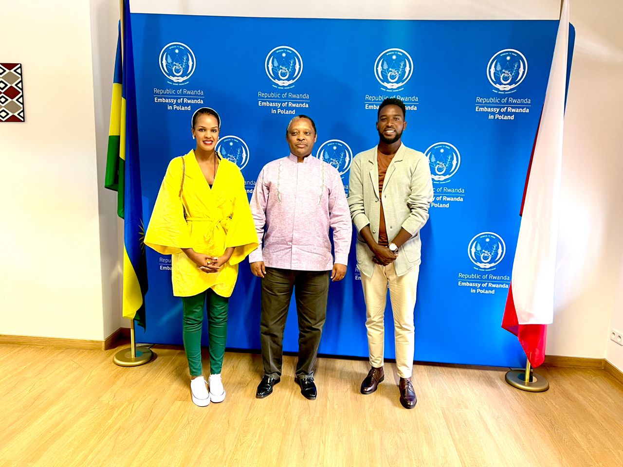 Tuganira na James ndetse na Daniella, badutangarije ko bishimye kuba baragize amahirwe yo guhura na Nyakubahwa Ambasaderi w'u Rwanda muri Poland, Amb. Prof Shyaka Anastase.