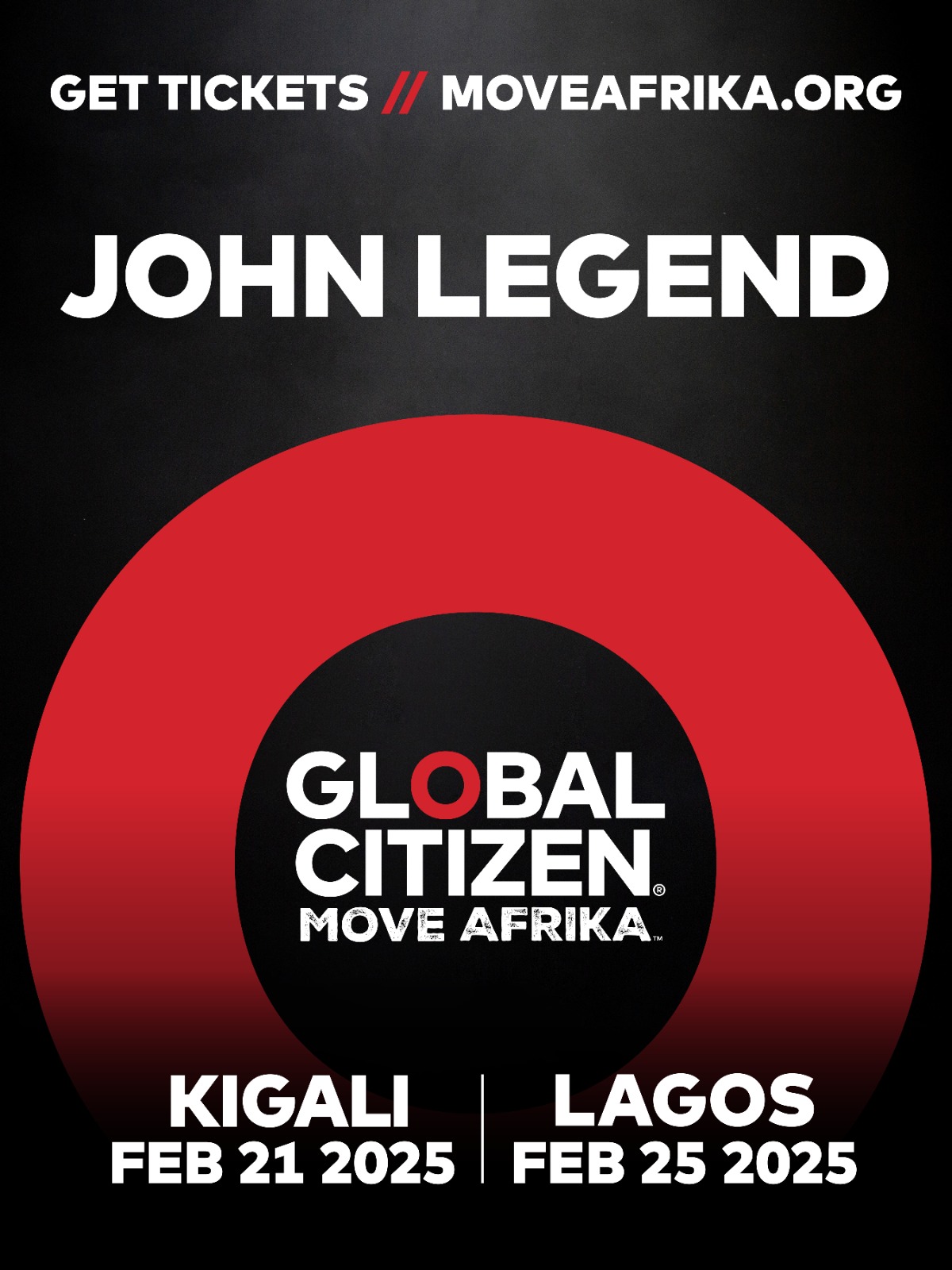 Umuririmbyi John Roger Stephens wamamaye mu muziki nka John Legend ategerejwe i Kigali mu mu gitaramo cya "Move Africa" kizaba ku wa 21 Gashyantare 2025, nyuma akomereze mu Mujyi wa Lagos muri Nigeria ku wa 25 Gashyantare 2025.