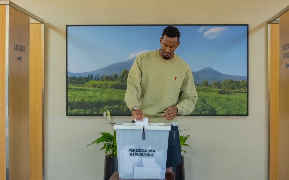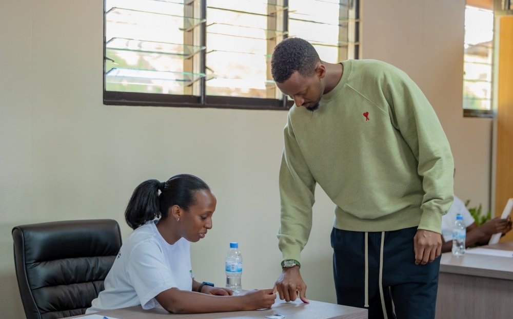 Ivan Cyomoro Kagame imfura Paul Kagame ubwo yatoraga anashyirwaho akamenyetso kagaragaza ko yamaze gutoraCaptain Ian Kagame ashyira urupapuro rw'itora ahabugenewe nyuma yo gutora