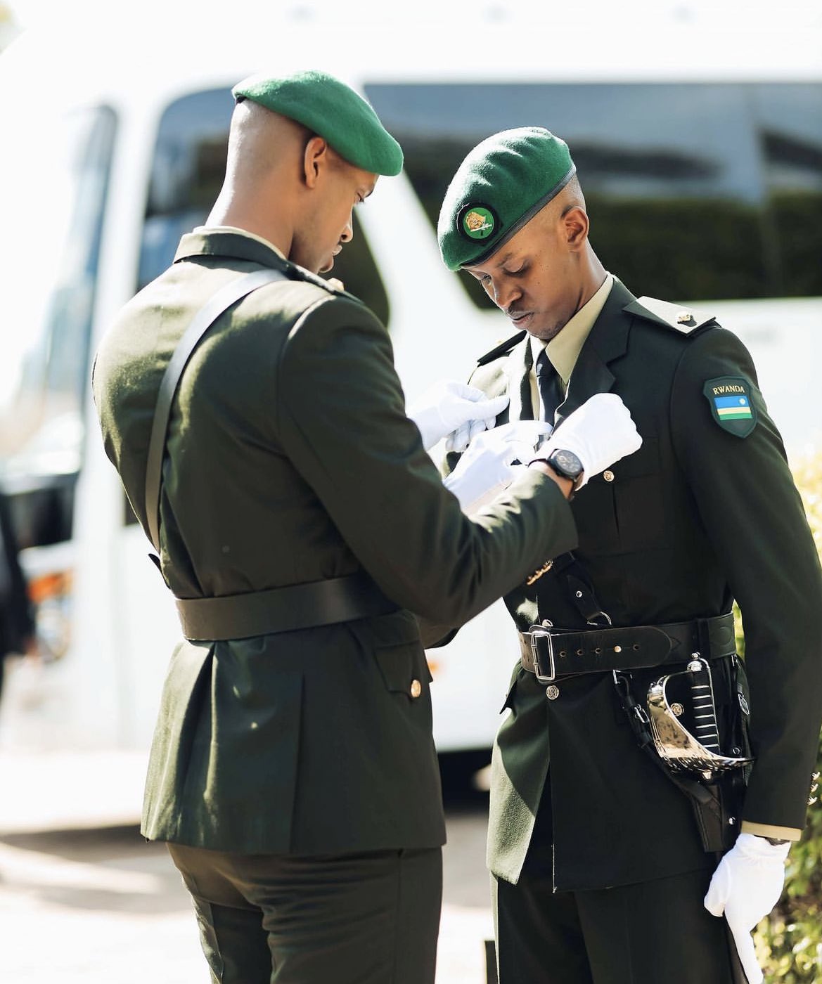 Amafoto y'urwibutso yo ku munsi w'ubukwe bwa Lt David ari kumwe na Cpt Ian Kagame aha bose bari bakiri ba 2nd Lt