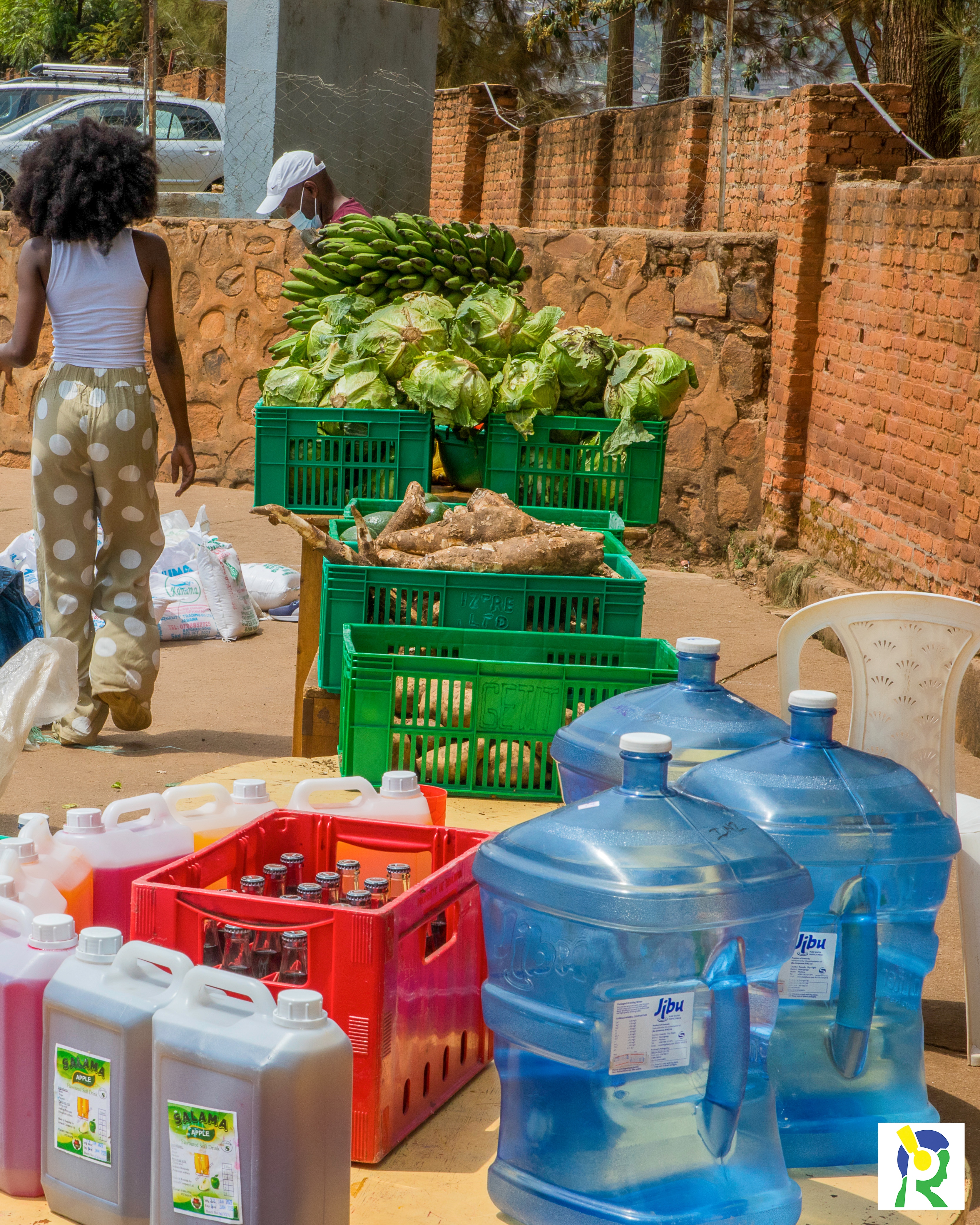 Aha bashyiraga ku murongo ibiribwa bari bagiye gutanga ku miryango 108
