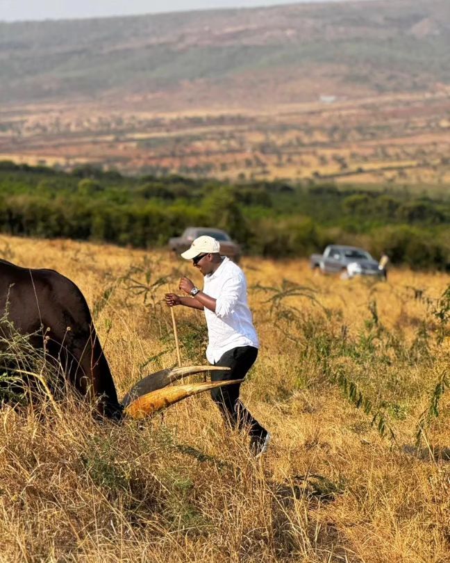 Amafoto ya Nel Ngabo ubwo yakiraga inka na Perezida