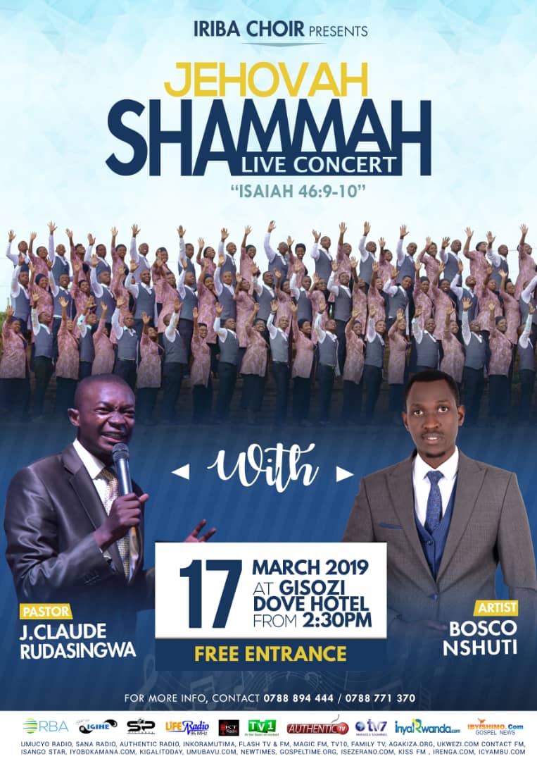 Vincent Musafiri Perezida wa Korali Iriba ibarizwa muri ADEPR Taba mu karere ka Huye, yatangarije Inyarwanda.com ko bagiye gukorera i Kigali igitaramo gikomeye kizaba tariki 17/03/2019 mu ntego nyamukuru yo kuramya Imana bazirikana kandi bahamya ko Imana iriho. Yagize ati: "Intego y’igitaramo “Jehovah Shammah " ni ukuramya Imana tuzirikana kandi duhamya ko Imana IRIHO."