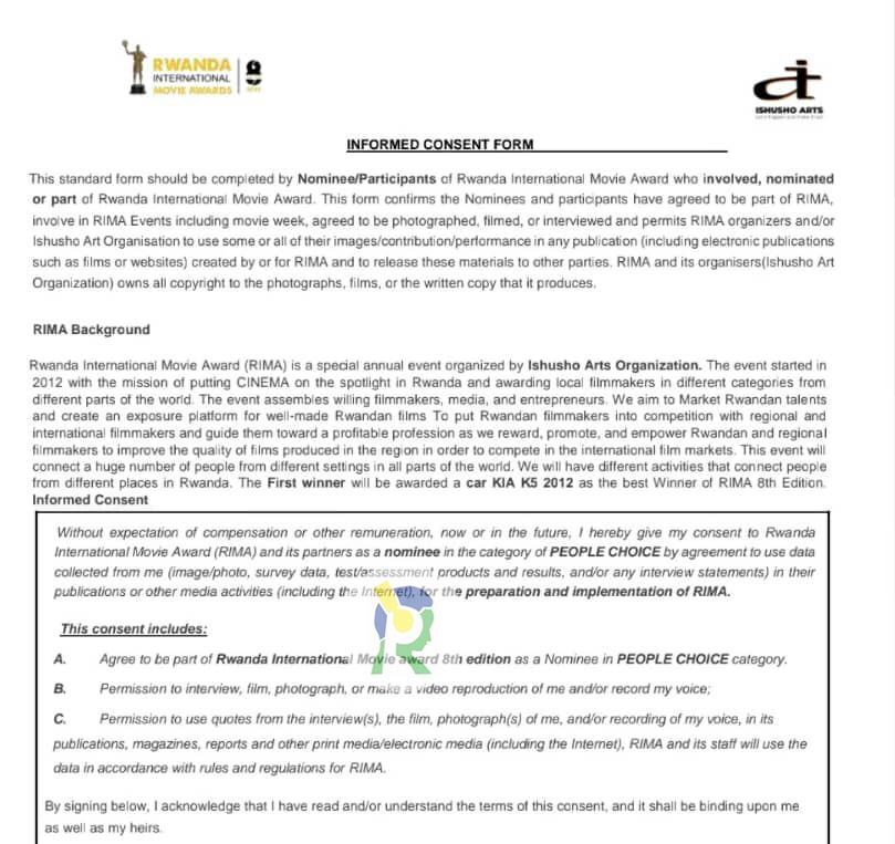 Rwanda International Movie Awards yahawe inyandiko y’amasezerano yagombaga